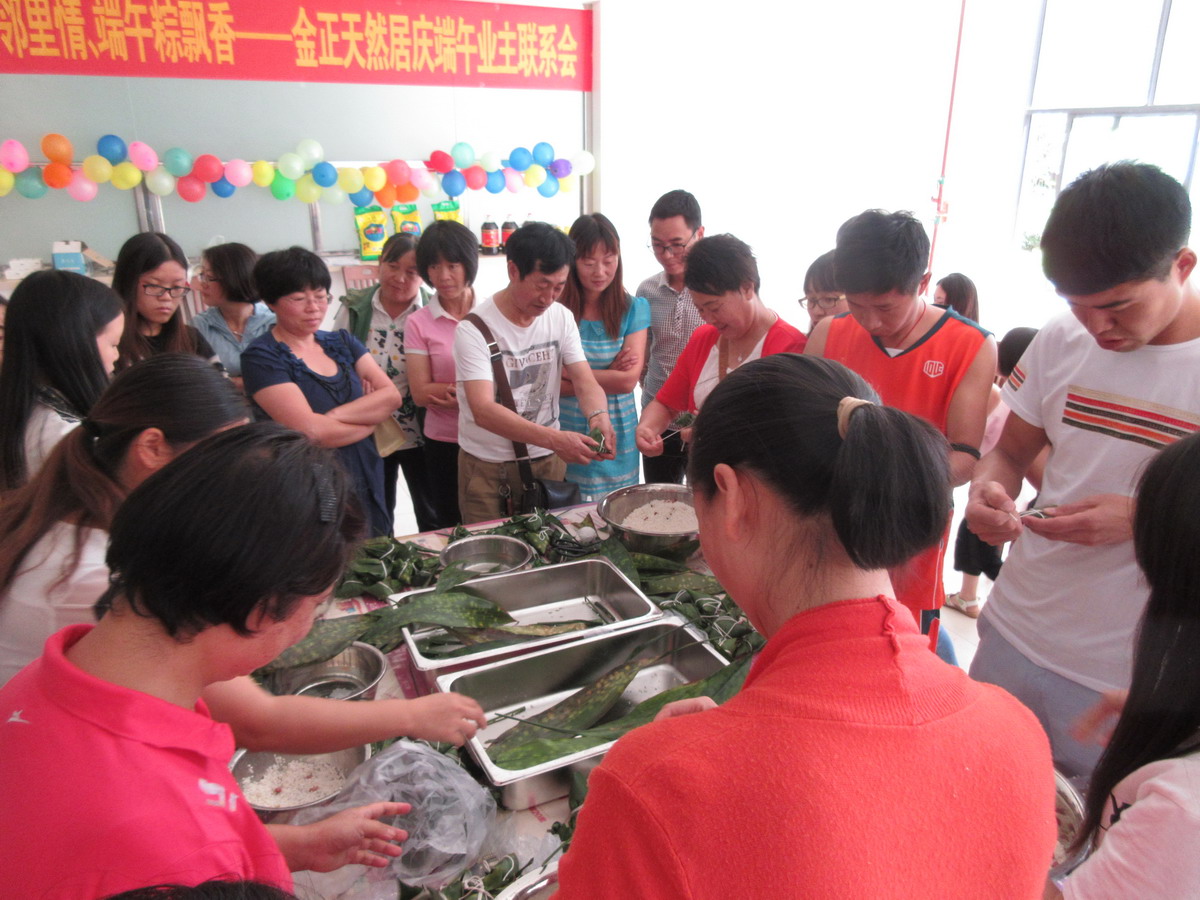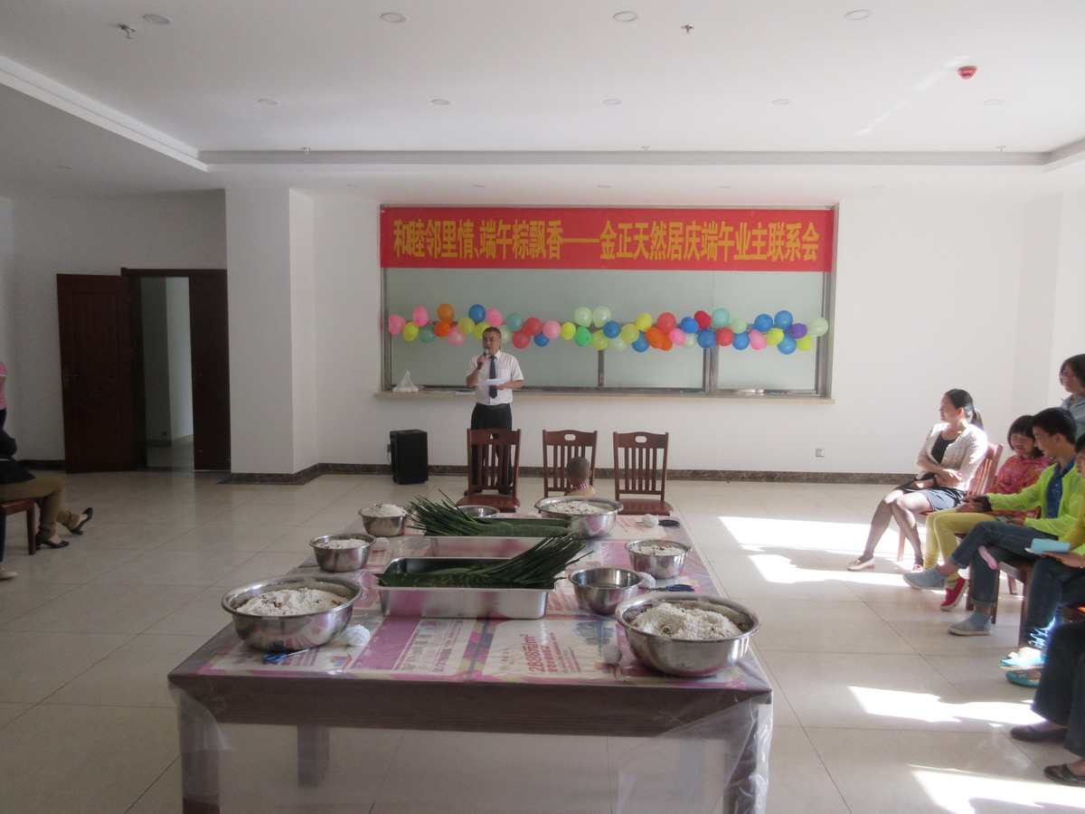 •     為繼承和發(fā)揚(yáng)民族優(yōu)秀傳統(tǒng)文化,營造和諧社區(qū)氛圍,增強(qiáng)小區(qū)業(yè)主鄰里間感情,豐富小區(qū)業(yè)主業(yè)余文化生活,201668,由金正天然居物業(yè)管理處和天然居銷售部共同主辦、藍(lán)天琴行協(xié)辦的天然居慶端午業(yè)主聯(lián)系暨包粽子大賽在天然居小區(qū)食堂成功舉辦,經(jīng)過前期籌備,活動當(dāng)天共有40余戶業(yè)主和意向客戶參與包粽子比賽,實(shí)際到場100余人。