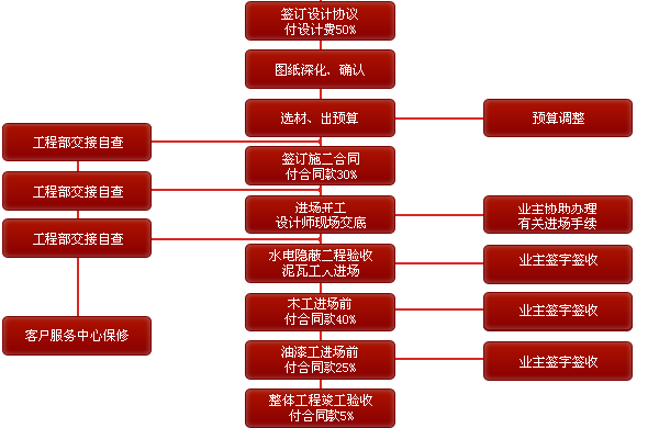 1.前期設(shè)計(jì) -- 2.主體拆改 -- 3.水電改造 -- 4.木工 -- 5.貼磚 -- 6.刷墻面漆 -- 7.熱水器安裝 -- 8.廚衛(wèi)吊頂 -- 9.櫥柜安裝-- 10.煙機(jī)灶安裝 -- 11.木門安裝 -- 12.地板安裝 -- 13.鋪貼壁紙 -- 14. 開關(guān)插座安裝 -- 15.燈具安裝 -- 16.五金潔具安裝 -- 17.窗簾桿安裝 -- 18.拓荒保潔 -- 19.家具進(jìn)場 -- 20.家電安裝 -- 21.家居配飾